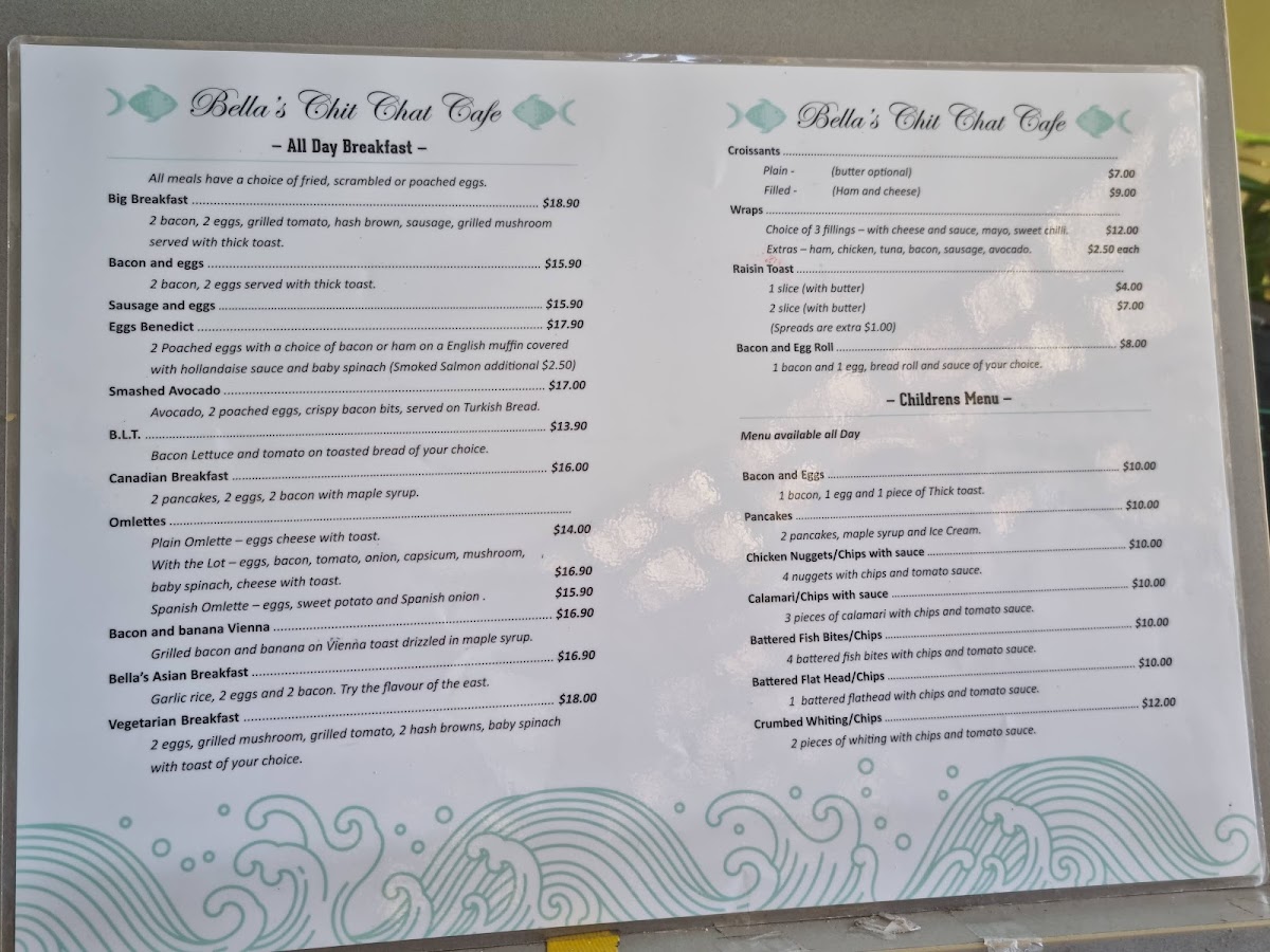 If you're looking for a place to enjoy a relaxed atmosphere with great food, Bella's Chit Chat Cafe Menu has something for everyone. Nestled at The Whale Marina on 17 Buccaneer Dr, Urangan, this cozy cafe offers a variety of dishes that cater to all tastes. Whether you're in the mood for a hearty breakfast, a light lunch, or a tempting dessert, Bella's has you covered. You’ll find everything from delicious sandwiches and fresh salads to mouth-watering pastries and hot drinks. Each dish is prepared with fresh, quality ingredients, making every bite a delight. The menu is perfect for those looking for comfort food with a touch of flair, ideal for a laid-back dining experience.